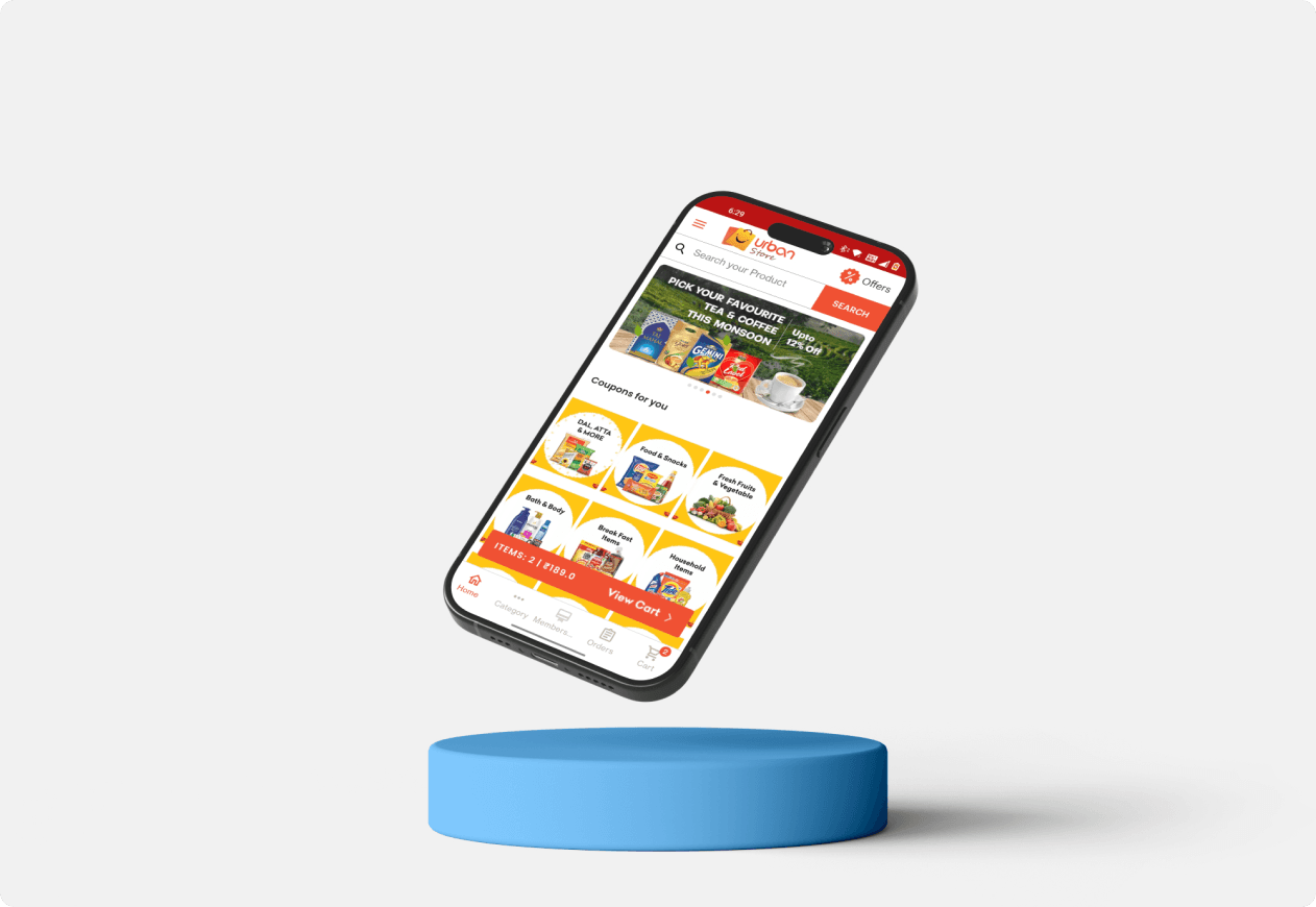 Urbanstore app provide multipule products deliver like, Home needs, Birthday Cakes, Restaurant Food. User can select available of location like selected villages, so people can stay at home buy a products online with instant discounts.